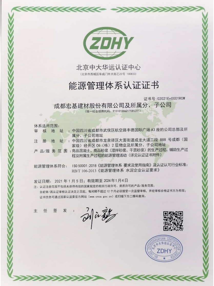 12月25日,成都宏基建材股份有限公司能源管理體系通過中大華遠(yuǎn)公司的最終審核,順利獲得能源管理體系認(rèn)證證書。