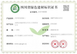 蓉西分公司所生產(chǎn)的C15-C60預(yù)拌普通混凝土以及C30P8預(yù)拌抗?jié)B混凝土通過各級評審專家審核及公示,并于2019年4月9日取得“四川省綠色建材標(biāo)識證書”