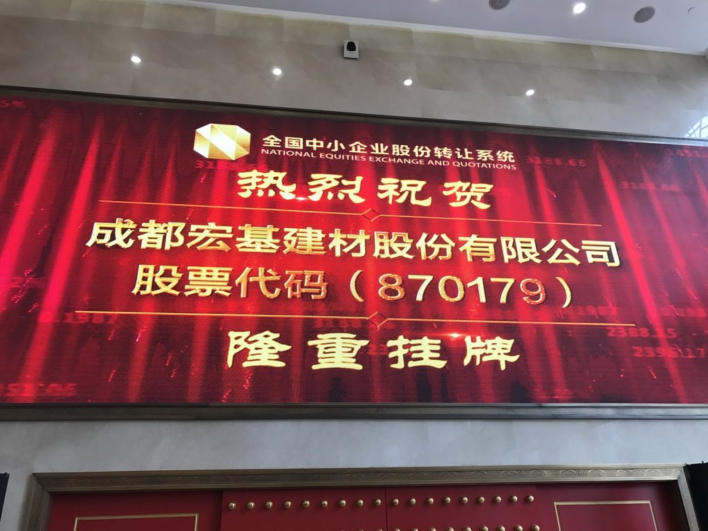 2016年12月16日,成都宏基建材股份有限公司(以下簡(jiǎn)稱“宏基股份”)在全國(guó)中小企業(yè)股份轉(zhuǎn)讓系統(tǒng)(簡(jiǎn)稱“新三板”)正式掛牌,股票代碼870179,成為成都地區(qū)第一家新三板掛牌的混凝土專業(yè)生產(chǎn)企業(yè)。2017年1月18日上午10:30,宏基股份掛牌儀式在北京全國(guó)中小企業(yè)股份轉(zhuǎn)讓系統(tǒng)成功舉行。宏基股份董事長(zhǎng)兼總裁吳逸云先生現(xiàn)場(chǎng)敲鐘,成都市市政府副秘書長(zhǎng)高建軍、金融辦主任梁其洲、宏基股份股東代表及公司員工代表共同出席掛牌儀式,見證了這一重要時(shí)刻。