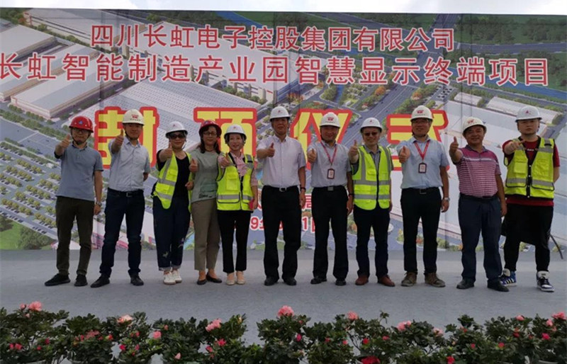 ?長(zhǎng)虹智能制造產(chǎn)業(yè)園智慧顯示終端項(xiàng)目主廠房喜封金頂,受董事長(zhǎng)、黨委書記趙振元同志委托,何平、蔣玉梅、李錫偉等參加封頂儀式