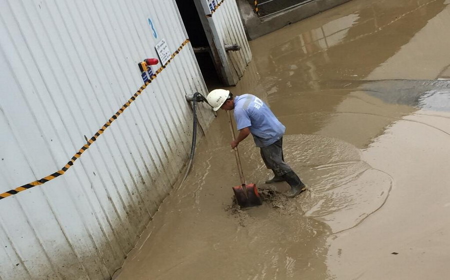 暴雨持續(xù)了整整五個小時,積水達一米多深,站內(nèi)一片狼藉,泥漿、砂石、漂浮物、垃圾等隨處可見,4臺3000瓦水泵、1臺11000瓦水泵連續(xù)工作26個小時,直至7月3日12:00才將積水排淺。普工班、站修站電班組、生產(chǎn)管理室、物資管理室、保安班組等緊密合作,他們顧不得已被污水泡發(fā)脹的雙腳,分不清是雨水還是汗水打濕的衣服,始終奮戰(zhàn)在搶險第一線。積水排淺后立即展開站內(nèi)衛(wèi)生打掃、設(shè)施設(shè)備檢修工作。為盡快恢復(fù)生產(chǎn),經(jīng)初步檢查確定優(yōu)先恢復(fù)2號線,首先全面檢修2號線電路電箱、電機、傳感器等設(shè)施設(shè)備,電機拆下烘干。同時將基坑內(nèi)高達四五十公分厚的淤泥清除、平皮帶、斜皮帶、主機、多個污水池等清理。大家齊心協(xié)力,在保證安全前提下與時間賽跑,終于在當(dāng)天18:00左右2號線恢復(fù)生產(chǎn)狀態(tài)。7月4日中午1號線和3號線也先后恢復(fù)生產(chǎn)狀態(tài)。