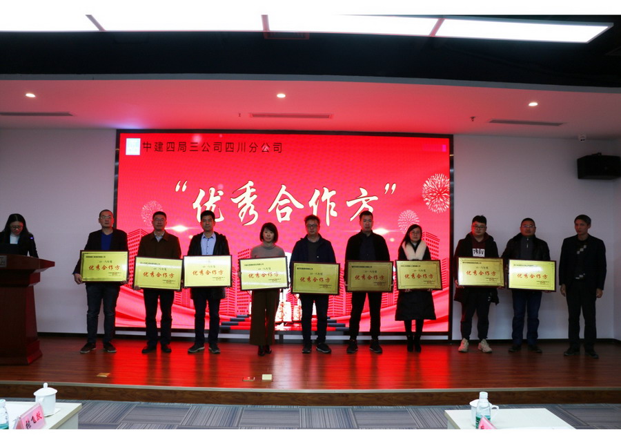 2019年1月5日,中建四局三公司年度“分包供商座談會(huì)”隆重舉行。經(jīng)該公司物資部、生產(chǎn)部、工程部等多個(gè)部門評(píng)分,成都宏基建材股份有限公司榮獲“優(yōu)秀合作方”的榮譽(yù),成為唯一獲得此榮譽(yù)的混凝土供應(yīng)商。銷售總監(jiān)楊宗余女士受邀代表公司參會(huì)并授獎(jiǎng)。