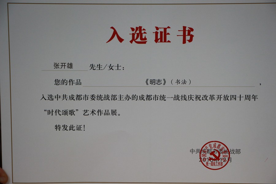 我司員工張開雄在此次作品展出評比活動中,其參賽作品《明志》成功入選“時代頌歌”藝術(shù)作品展,為我司再添新譽。