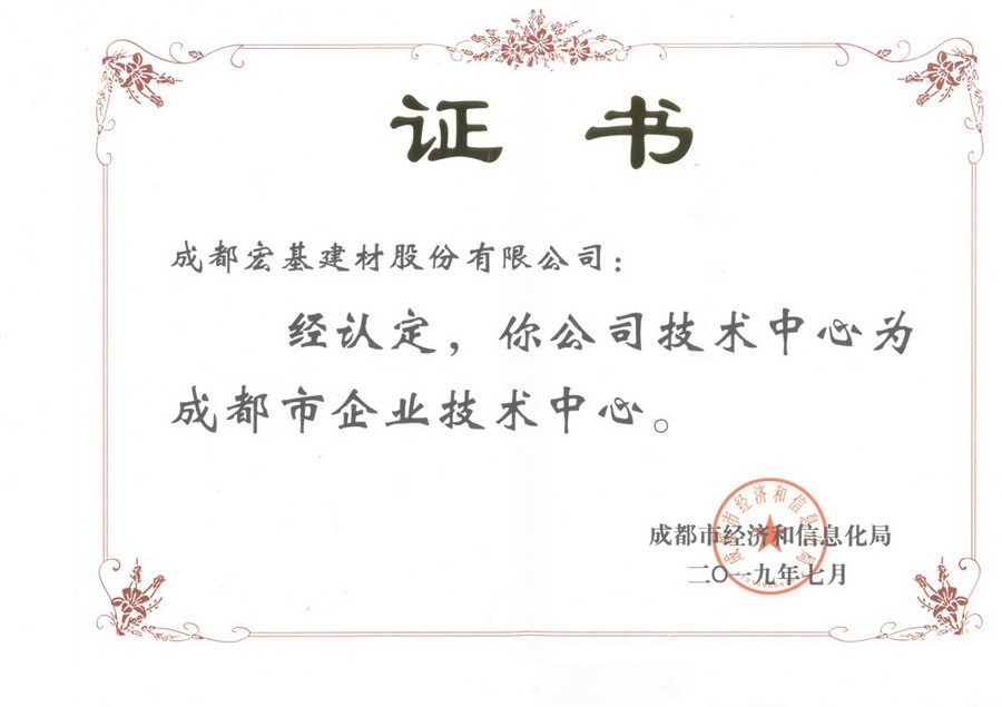 為深入實施創(chuàng)新驅(qū)動發(fā)展戰(zhàn)略,加強(qiáng)以企業(yè)為主體的技術(shù)創(chuàng)新體系建設(shè),進(jìn)一步提高企業(yè)創(chuàng)新力,成都市經(jīng)濟(jì)和信息化局按照《成都市企業(yè)技術(shù)中心管理辦法》有關(guān)規(guī)定,經(jīng)嚴(yán)格的初審、專家評審、現(xiàn)場核實和公示,于2019年7月認(rèn)定成都宏基建材股份有限公司為成都市企業(yè)技術(shù)中心單位。