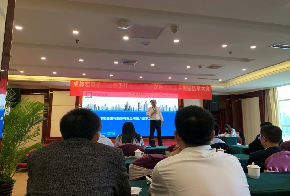 秋高氣爽艷陽照,金桂飄香紅旗飄。9月27日,根據(jù)職代會章程的要求及有關(guān)規(guī)定,成都宏基第六屆職工代表大會第一次會議暨工會委員換屆選舉大會在麗天大酒店隆重舉行,公司常務(wù)副總裁兼黨支部書記周世洪同志、助理總裁曾晶女士、助理總裁沈娟女士、工會主席肖斌武同志、副主席魏剛同志、王定學同志以及特邀嘉賓EHS管理部鮑強、人力資源部副經(jīng)理張蕾出席了此次會議。