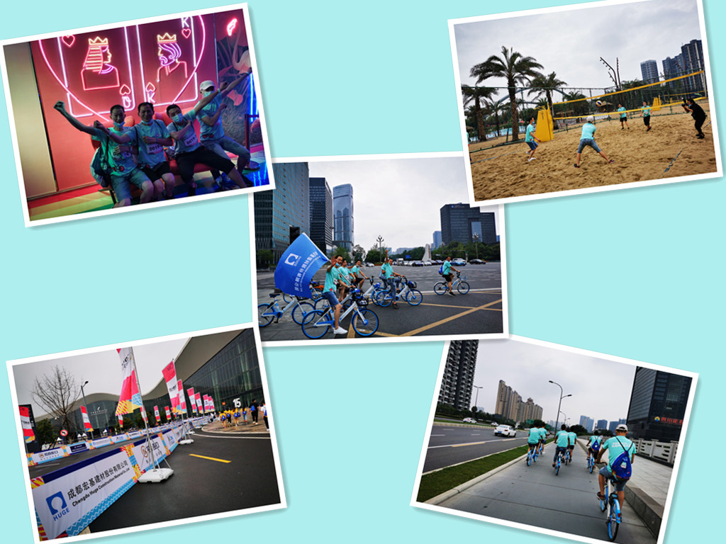 十二個打卡點涉及運動類、體驗類、美食類、拍照類,包括沙灘排球、足球、攀巖、咖啡館分辨咖啡種類、KTV拍照、大運會倒計時標(biāo)識牌合照等項目,騎行軌跡包含江灘公園、桂溪公園、天府大道、錦城湖、東籬翠湖、天府四街、天府五街等區(qū)域,約合35公里,歷時五個半小時,隊友們分工合作,各自選擇自己擅長的領(lǐng)域參加項目,相互加油打氣,最終圓滿完成任務(wù)。
