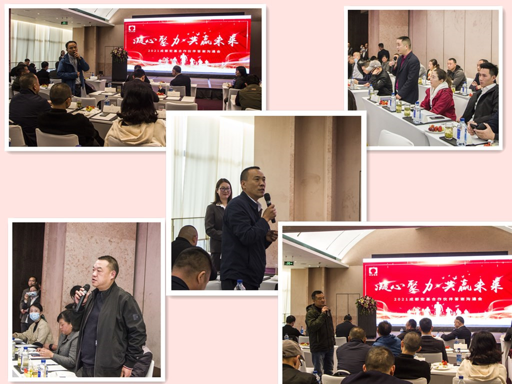 2021年3月25日,成都宏基合作伙伴答謝溝通會在凱賓斯基酒店舉行。公司董事長兼總裁吳逸云先生攜高管團隊、物資、生產(chǎn)系統(tǒng)同事出席,近七十位供應(yīng)、服務(wù)合作伙伴應(yīng)邀赴會。