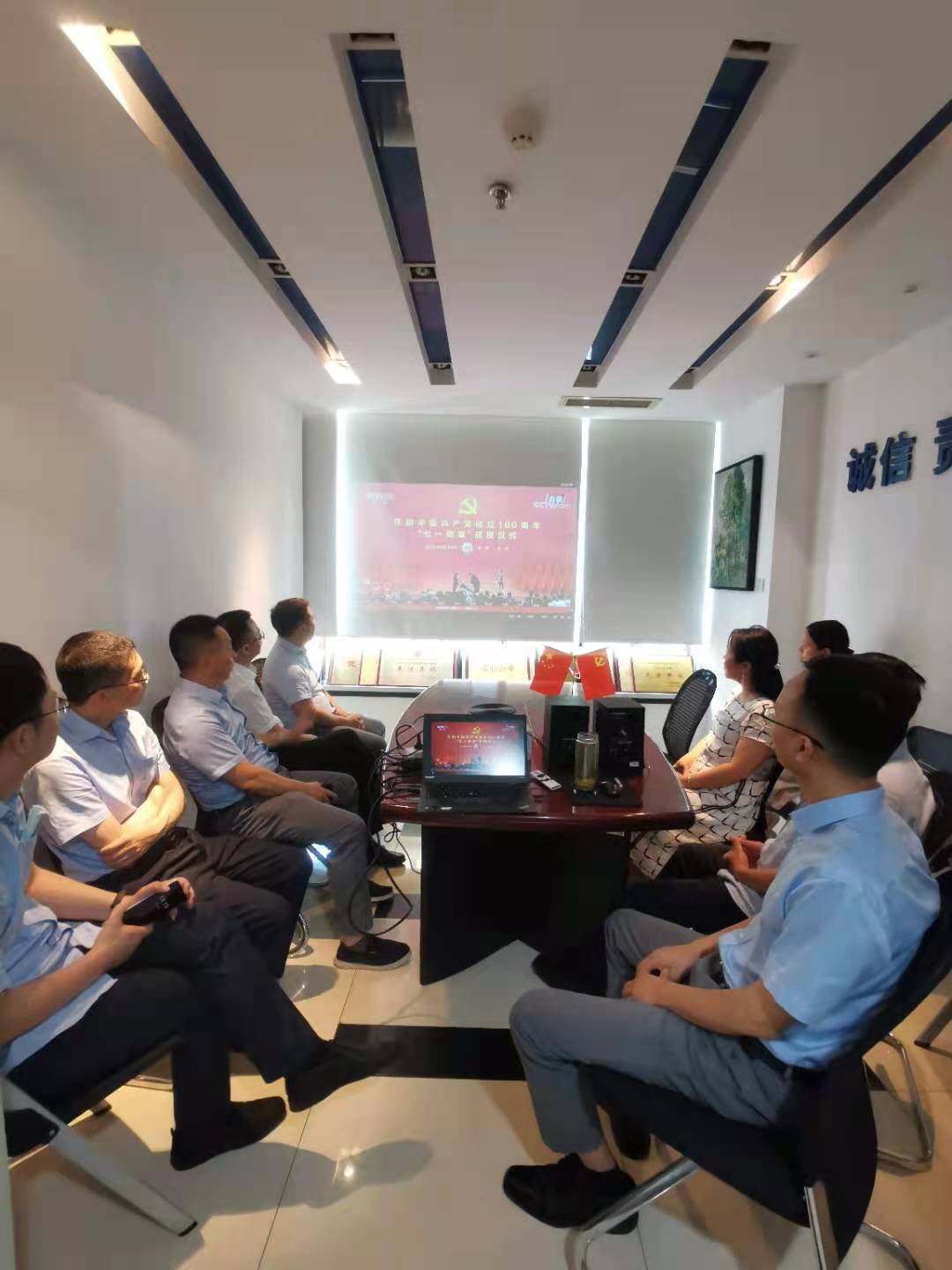 公司黨員和員工代表觀看七一勛章頒授獎儀式