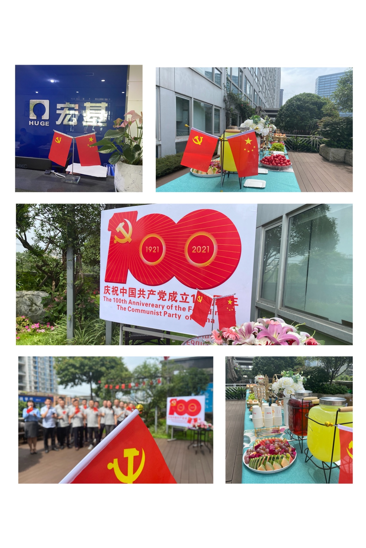 讓我們將時間定格在2021年7月1日下午15:30,豐德辦公區(qū)一片歡樂的海洋,伴隨著《沒有共產(chǎn)黨就沒有新中國》的嘹亮歌聲,歡樂冷餐會,紅歌獻給黨拉開帷幕。