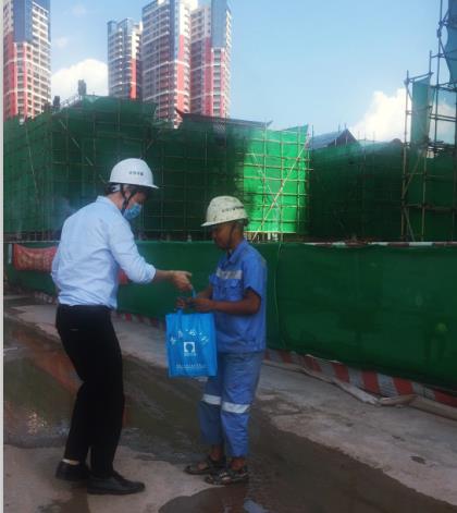 七月如火,地面溫度更是高達(dá)37度以上。 29日,慰問組成員攜慰問禮品前往泰康、中德麓府等在建施工工地對(duì)我司員工進(jìn)行慰問。走進(jìn)施工工地,撲面而來的熱氣令人眩暈,而此時(shí),我們的員工正在工地?fù)]汗如雨,一座座美麗的高樓拔地而起,美麗的城市少不了他們的辛勤付出。職工們收到防暑降溫禮品后紛紛表示:一定會(huì)克服酷暑高溫,堅(jiān)守崗位,盡職盡責(zé),確保安全生活和生產(chǎn)。戰(zhàn)高溫,抗酷暑,他們,正是最可愛的人。