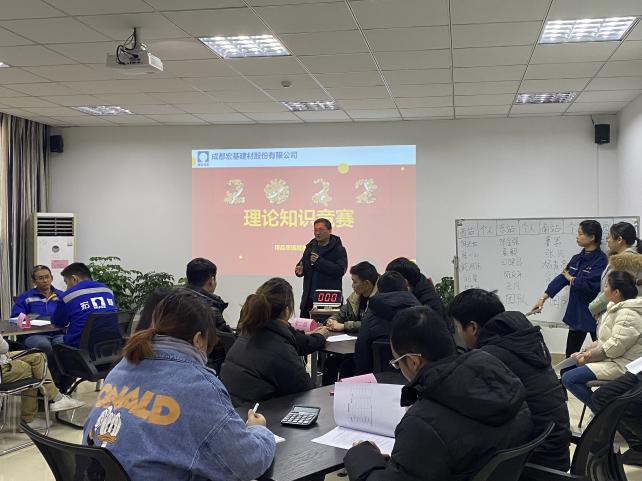2月14日,成都宏基建材股份有限公司首屆知識競賽、配合比大賽圓滿結(jié)束。本次競賽以“以賽促學(xué)、以學(xué)促用”為主題,以提高技能水平為目標(biāo),這不僅是一次大比武大練兵,更是對試驗(yàn)隊(duì)伍技能水平和綜合素質(zhì)的大檢閱。本次競賽在蓉西分公司舉行,共分為理論競賽和配合比大賽兩個(gè)環(huán)節(jié)。旨在將專業(yè)理論知識與生產(chǎn)實(shí)踐相結(jié)合,充分考察各參賽隊(duì)員對配合比設(shè)計(jì)合理性、專業(yè)技能水平、團(tuán)隊(duì)協(xié)作等方面的綜合能力。進(jìn)入競賽共有4組隊(duì)伍,每組隊(duì)伍由5-6人組成。蒞臨本次競賽現(xiàn)場的領(lǐng)導(dǎo):副總裁胡總、助理總裁曹總、副總工程師韓總,以及分公司負(fù)責(zé)人等。