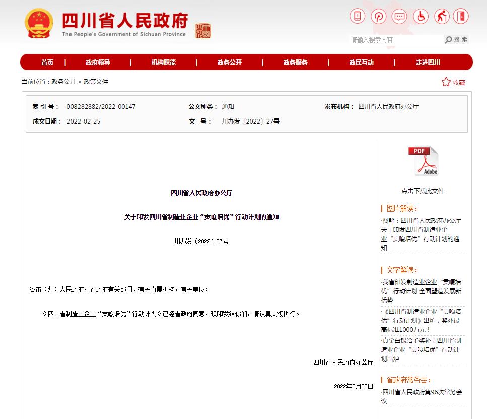 經(jīng)企業(yè)自主申報(bào)、省國(guó)資委和各地區(qū)經(jīng)濟(jì)和信息化主管部門初核推薦、專家評(píng)審,四川省經(jīng)信廳于2022年3月16日公示了四川省制造業(yè)“貢嘎培優(yōu)”100戶企業(yè)名單。根據(jù)《四川省制造業(yè)企業(yè)“貢嘎培優(yōu)”行動(dòng)計(jì)劃》,將給予入圍企業(yè)多方面的政策支持,助力其做大做強(qiáng),實(shí)現(xiàn)可持續(xù)高質(zhì)量發(fā)展。