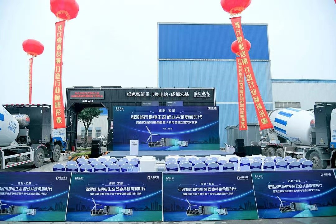 2022年5月16日,西南地區(qū)首座綠色商砼重卡換電站啟動暨交付儀式在成都宏基建材股份有限公司(以下簡稱成都宏基)順利舉辦。