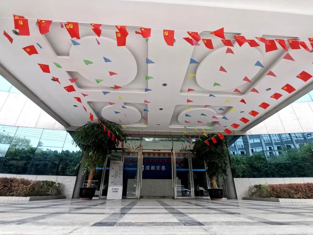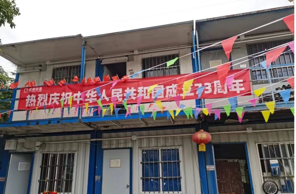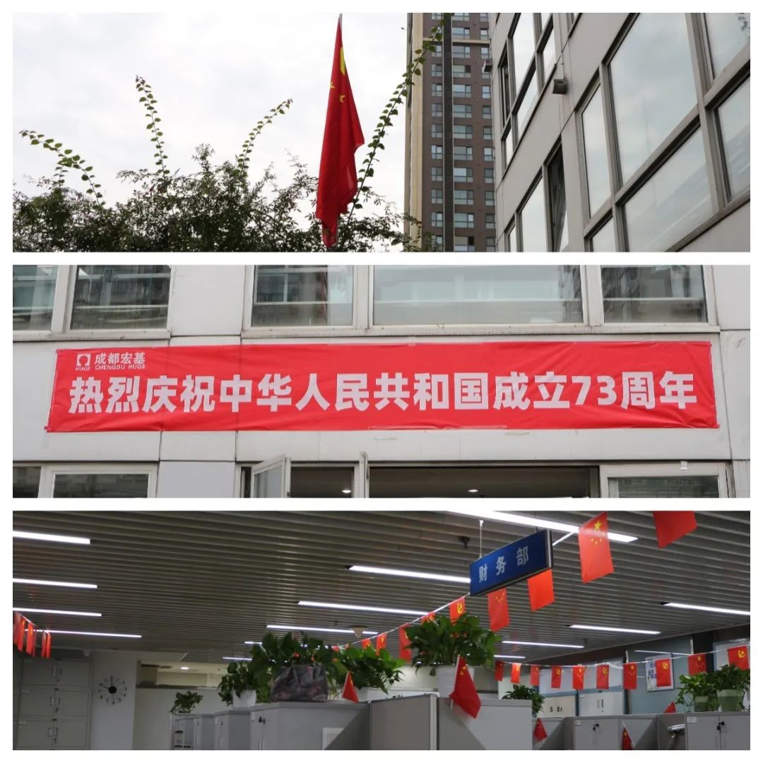 鮮艷的五星紅旗、各辦公區(qū)慶祝佳節(jié)的橫幅更是為節(jié)日的到來增添喜慶氛圍。