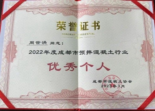 近期成都市混凝土協(xié)會(huì)組織開(kāi)展了2022年度評(píng)優(yōu)工作,公司榮獲2022年度促進(jìn)成都市預(yù)拌混凝土行業(yè)發(fā)展“先進(jìn)企業(yè)”稱(chēng)號(hào),公司常務(wù)副總裁周世洪先生榮獲行業(yè) “優(yōu)秀個(gè)人”稱(chēng)號(hào)。