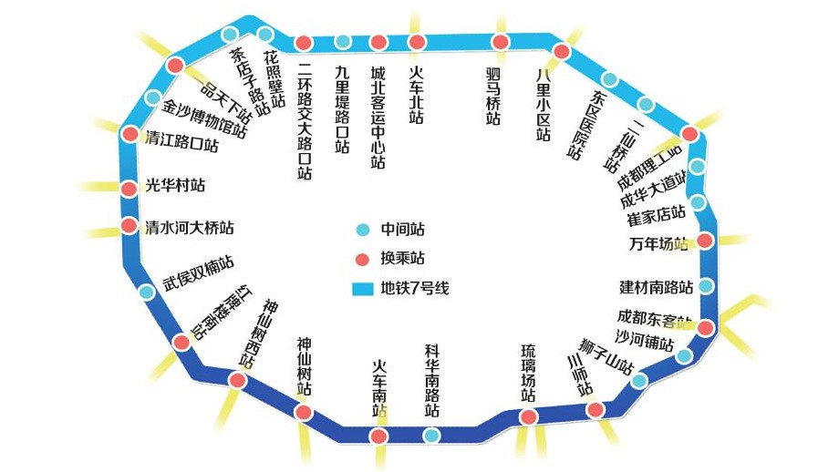 成都軌道交通7號(hào)線是成都市中心城區(qū)沿二環(huán)附近敷設(shè)的一條閉合環(huán)線,線路全長約38.615km,全部為地下線,共設(shè)31座車站,是首條一次性開通車站數(shù)最多、初期配車數(shù)最多、換乘站最多的地鐵線路,2017年12月開通后,成都地鐵正式邁入“井+環(huán)”線網(wǎng)時(shí)代。