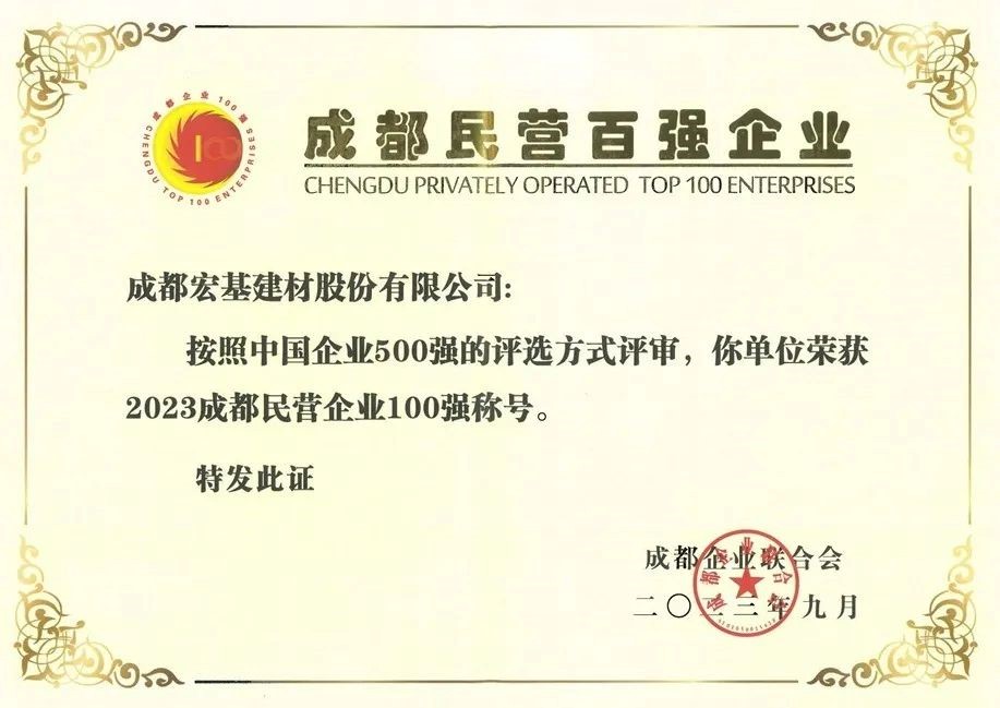 9月25日,由成都企業(yè)聯(lián)合會發(fā)起的“2023成都企業(yè)100強發(fā)布會”在成都舉行。會議發(fā)布了2023年成都企業(yè)100強系列榜單,成都宏基建材股份有限公司第五次榮膺“2023成都民營企業(yè)100強”。