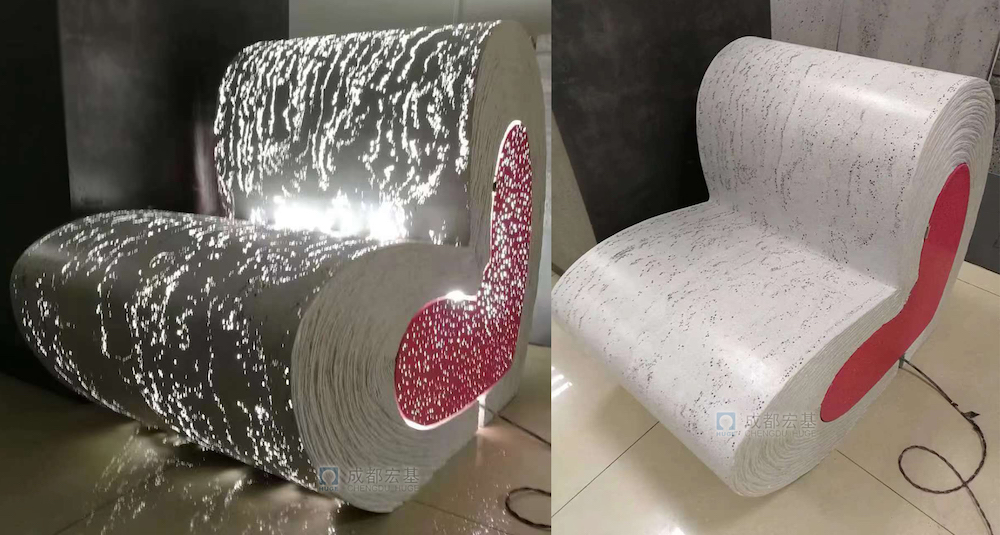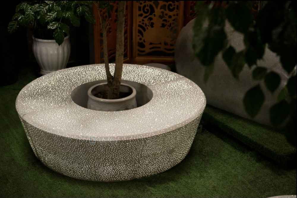 與普通透光混凝土相比,宏基透光混凝土強(qiáng)度高(抗壓強(qiáng)度≥40MPa)、優(yōu)異的抗裂性能(抗折強(qiáng)度≥8MP),豐富的造型(包括板、樹池、梯步和長凳等)和多樣的透光花樣(流水紋、滿天星和矩陣等),可完全滿足設(shè)計師的需要。