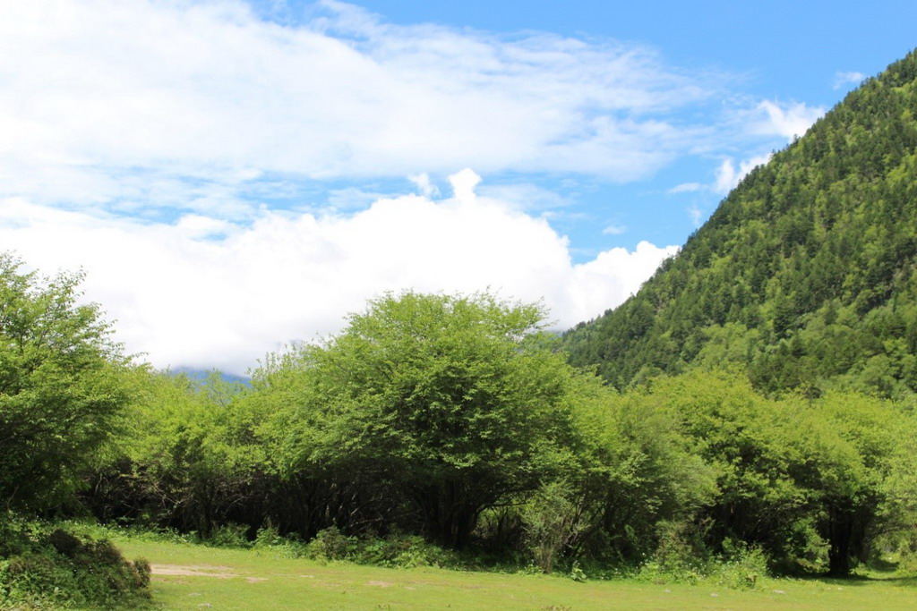 沿著木格措一路步行,一路上的風景美不勝收,陽光也緩慢的露出了他的身影,在藍天白云的映襯下,風景顯得格外迷人,讓人忘了城市里的煩惱,得到了全身心的放松。每個人也都開啟了瘋狂拍照模式。